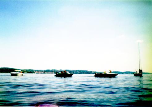 Freizeitkapitäne fährt direkt ans Seezeichen (an dem unsere Taucherflagge